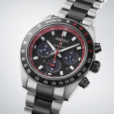 Furthermore, the scale used allows for measuring speeds from 50 km/h to 60 km/h, paying homage to the original Speedtimer bezel format from 1969. The chronograph movement’s vertical clutch and column wheel ensure the precision and reliability that are the hallmarks of Seiko’s 8R movement series. Caliber 8R48 features a 30-minute counter at nine o’clock and a 12-hour counter at six o’clock and is constructed with robustness and maintainability in mind. Its escapement is lightweight and strong, thanks to the use of MEMS technology, enhancing stability and precision. The SSC957 solar chronograph features a 60-minute chronograph function and a 24-hour sub-dial, and when fully charged, the watch operates for up to six months without exposure to light.